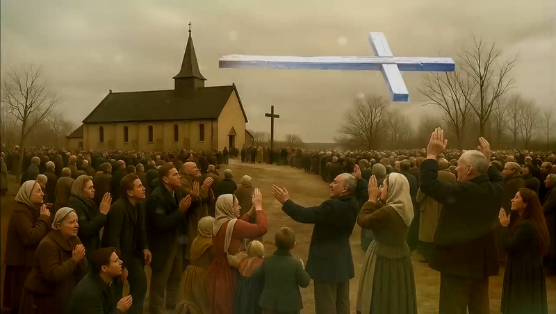 Quant à la croix, c'est la pire représentation qu'on en ait jamais faite: position, hauteur, taille, épaisseur, luminosité, couleur, perspective, tout est faux. Sans compter qu'elle masque les branches d'un arbre, ce qui pourrait signifier qu'on a surimpressionné une croix mal représentée sur un fond d'images conçu par I.A.
